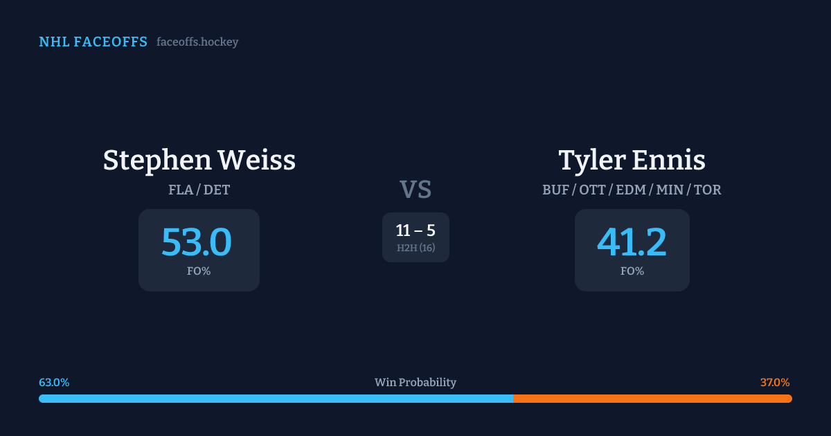 Stephen Weiss vs Tyler Ennis — Faceoff Head-to-Head