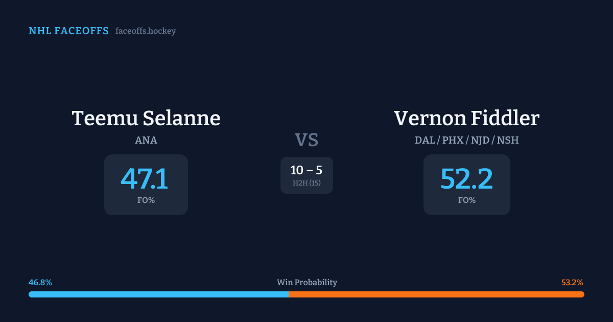 Teemu Selanne vs Vernon Fiddler — Faceoff Head-to-Head