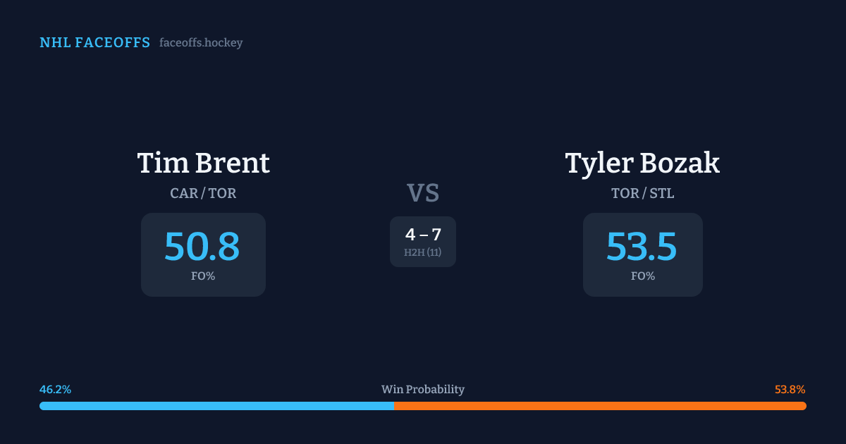 Tim Brent vs Tyler Bozak — Faceoff Head-to-Head