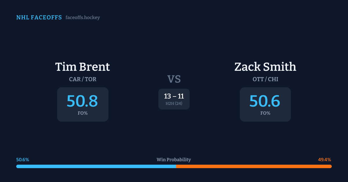 Tim Brent vs Zack Smith — Faceoff Head-to-Head