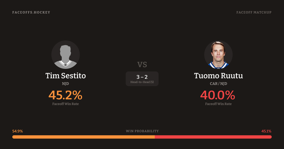 Tim Sestito vs Tuomo Ruutu — Faceoff Head-to-Head