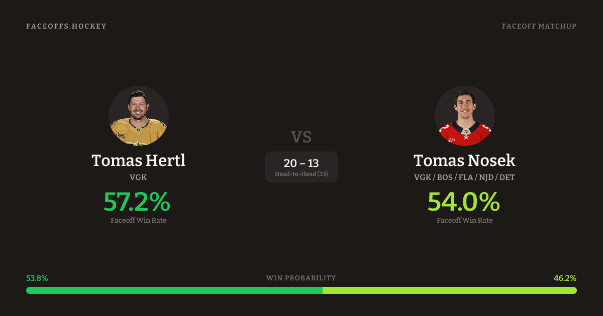 Tomas Hertl vs Tomas Nosek — Faceoff Head-to-Head
