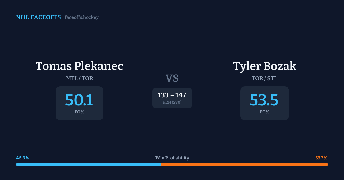 Tomas Plekanec vs Tyler Bozak — Faceoff Head-to-Head