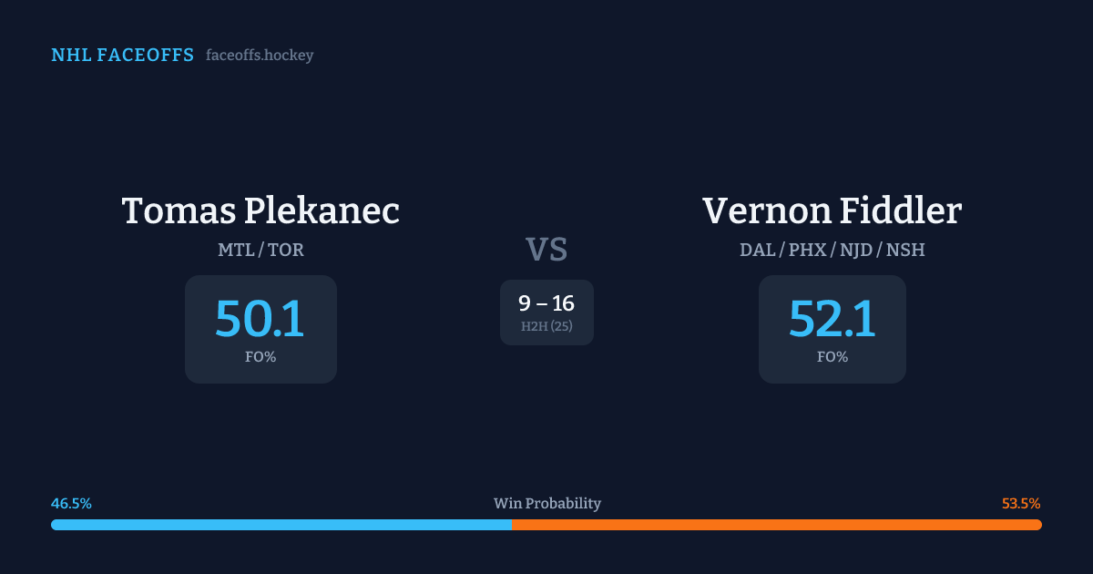 Tomas Plekanec vs Vernon Fiddler — Faceoff Head-to-Head