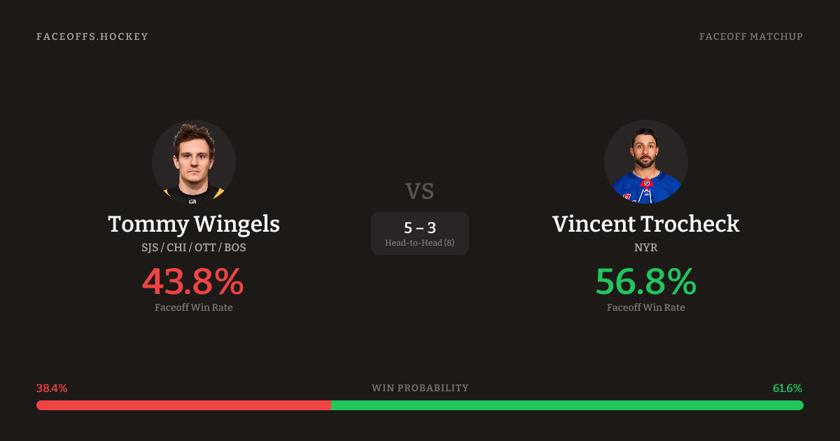Tommy Wingels vs Vincent Trocheck — Faceoff Head-to-Head