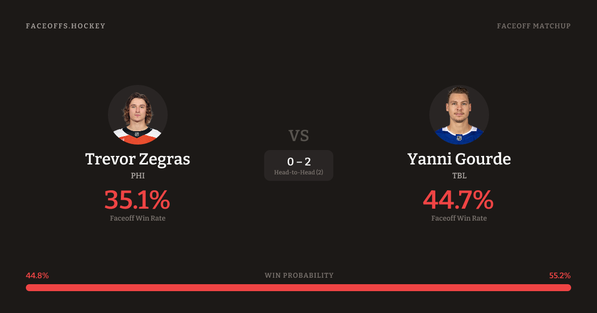 Trevor Zegras vs Yanni Gourde — Faceoff Head-to-Head
