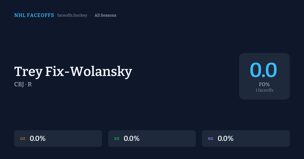 Trey Fix-Wolansky has a 2023-24 faceoff win percentage of 0.0% across 1 faceoffs in the 2023-24 season. Best zone: Neutral (0.0%).