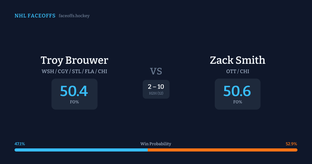 Troy Brouwer vs Zack Smith — Faceoff Head-to-Head