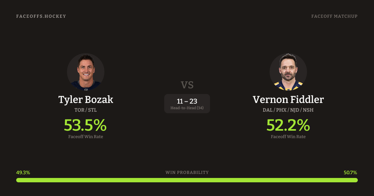 Tyler Bozak vs Vernon Fiddler — Faceoff Head-to-Head