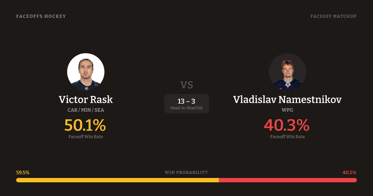 Victor Rask vs Vladislav Namestnikov — Faceoff Head-to-Head