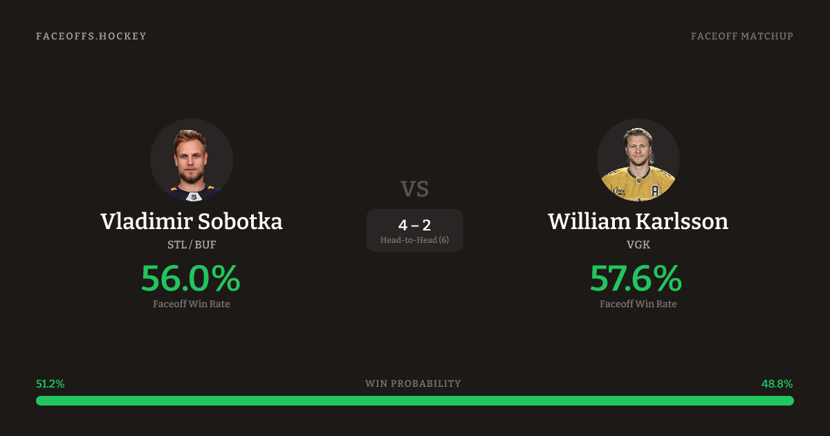 Vladimir Sobotka vs William Karlsson — Faceoff Head-to-Head