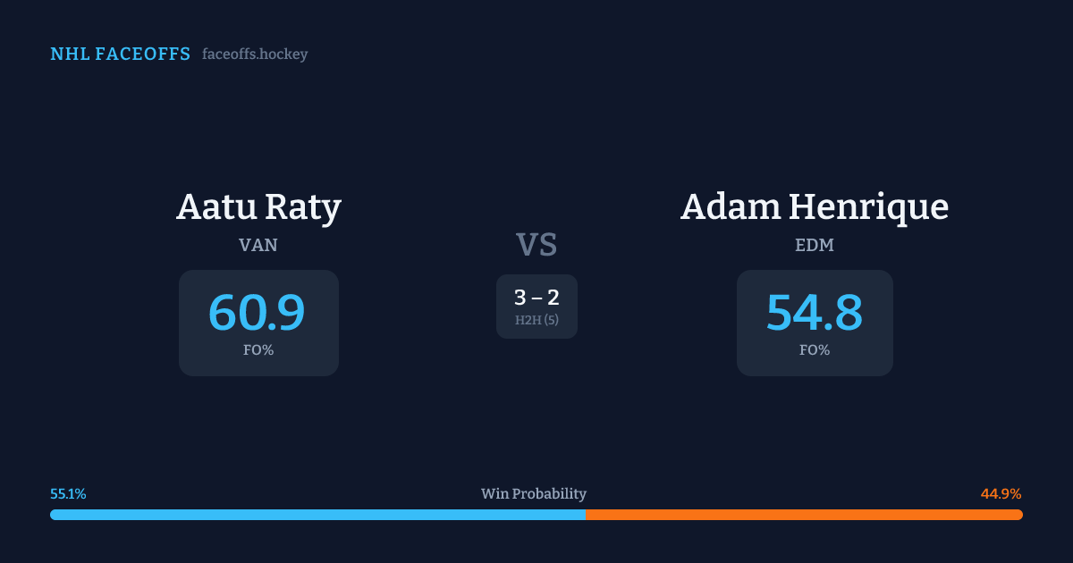 Aatu Raty vs Adam Henrique — Faceoff Head-to-Head