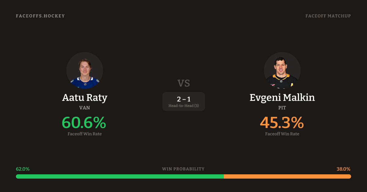 Aatu Raty vs Evgeni Malkin — Faceoff Head-to-Head