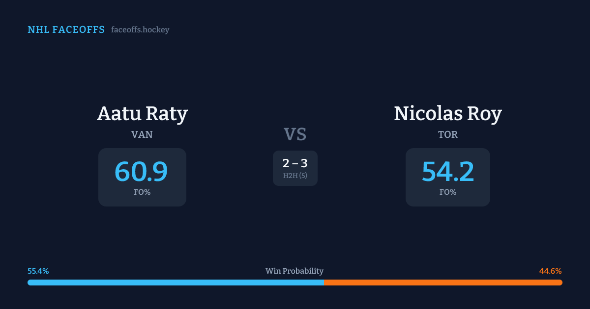 Aatu Raty vs Nicolas Roy — Faceoff Head-to-Head