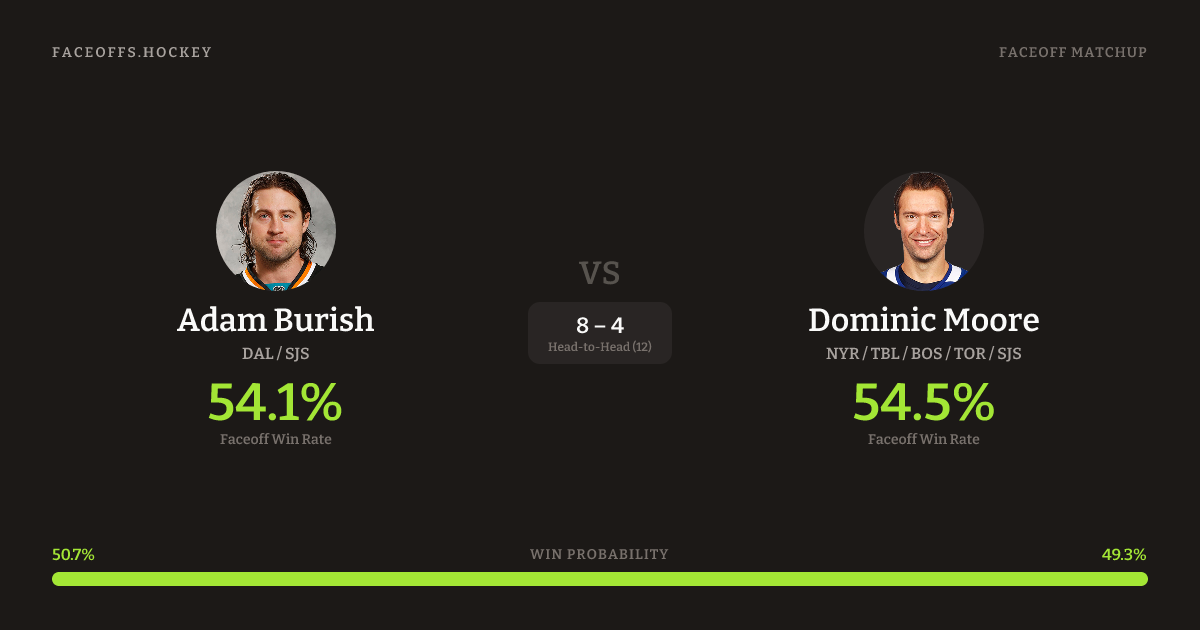 Adam Burish vs Dominic Moore — Faceoff Head-to-Head