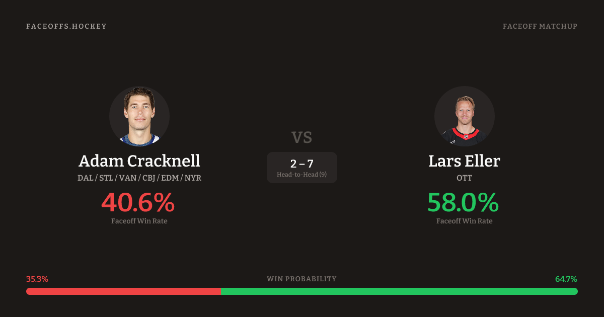 Adam Cracknell vs Lars Eller — Faceoff Head-to-Head