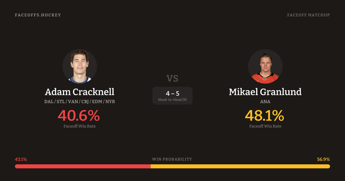 Adam Cracknell vs Mikael Granlund — Faceoff Head-to-Head