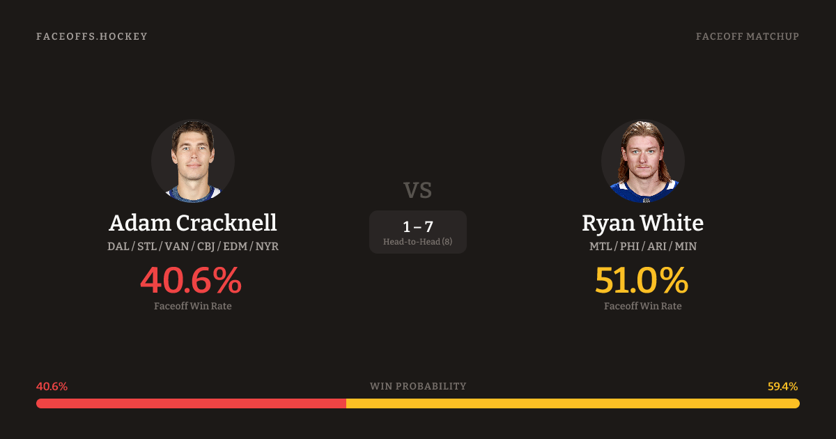 Adam Cracknell vs Ryan White — Faceoff Head-to-Head