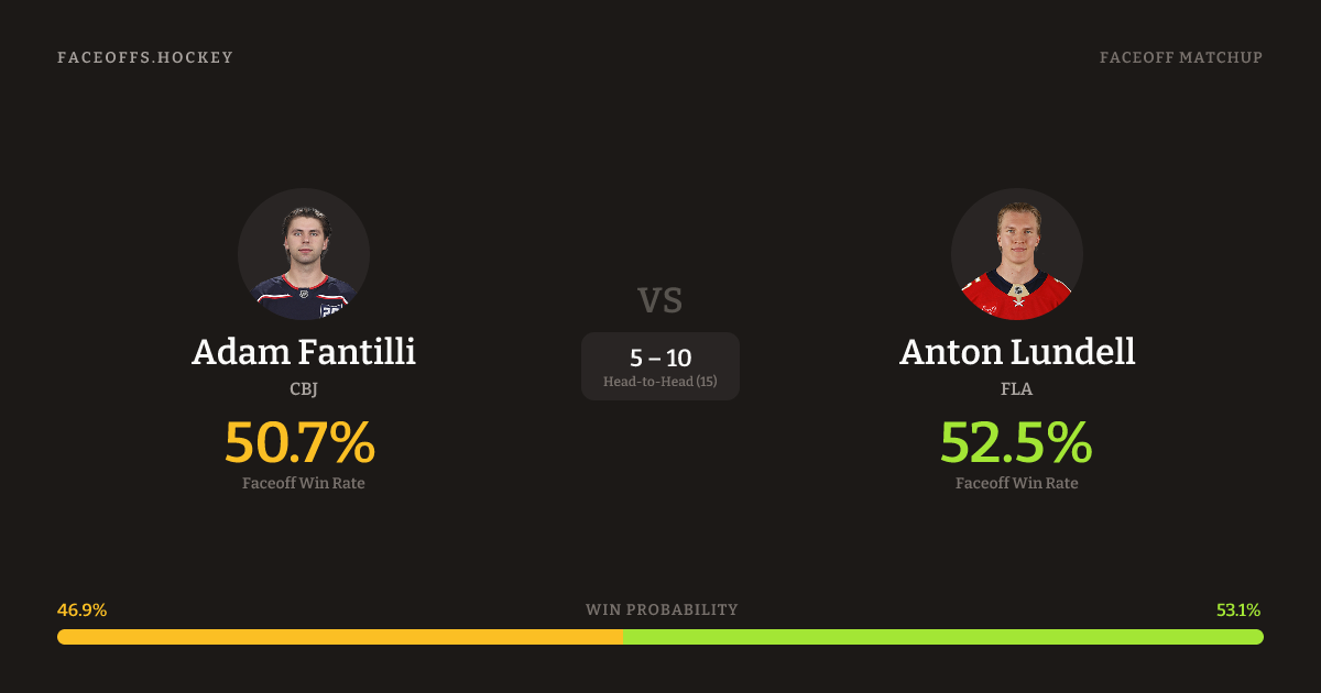 Adam Fantilli vs Anton Lundell — Faceoff Head-to-Head