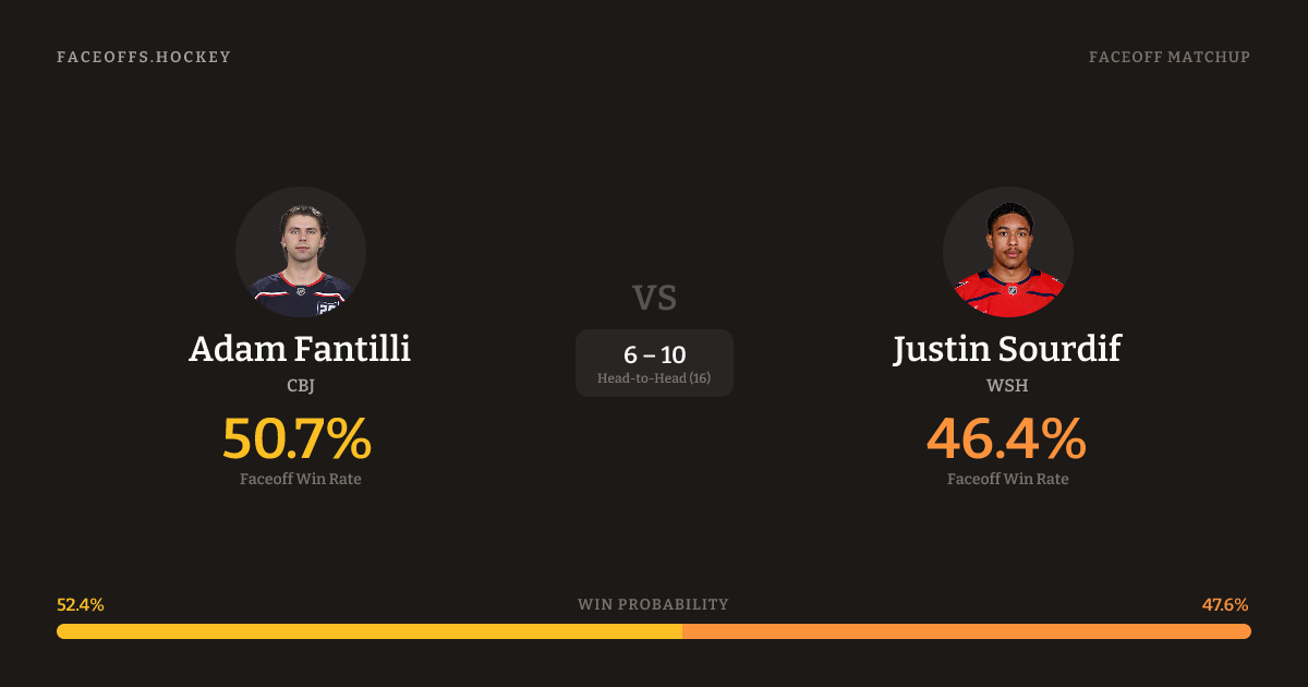 Adam Fantilli vs Justin Sourdif — Faceoff Head-to-Head