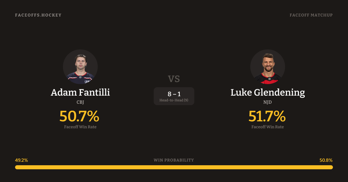 Adam Fantilli vs Luke Glendening — Faceoff Head-to-Head