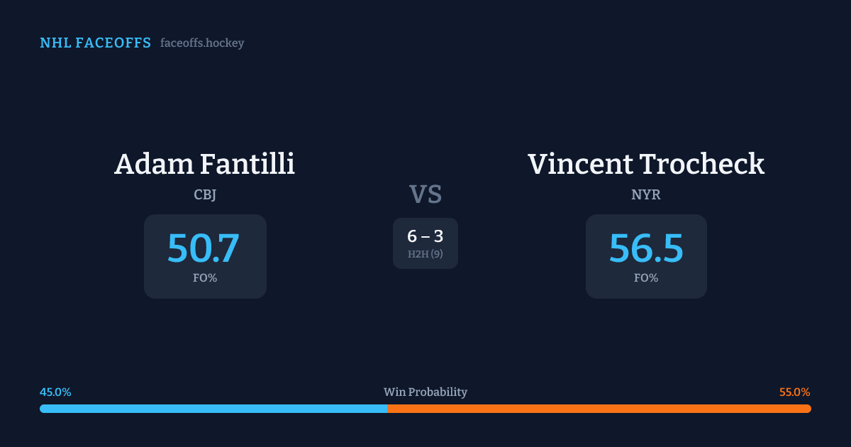 Adam Fantilli vs Vincent Trocheck — Faceoff Head-to-Head