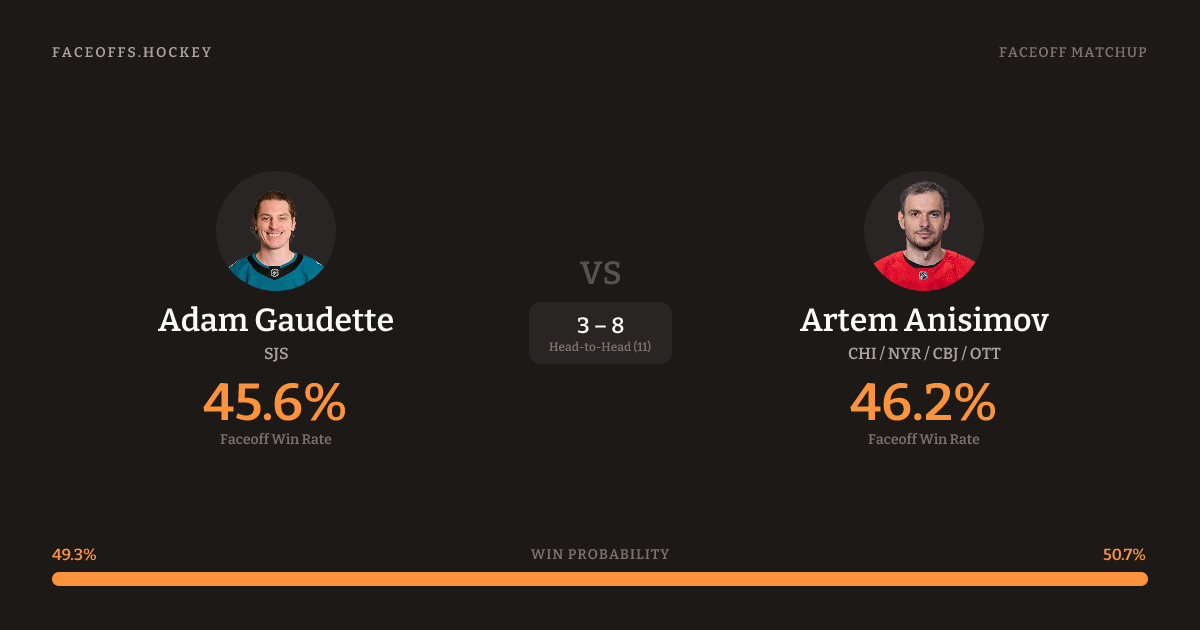 Adam Gaudette vs Artem Anisimov — Faceoff Head-to-Head