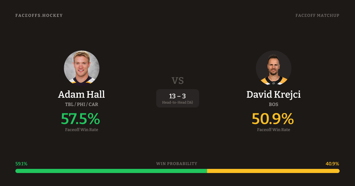 Adam Hall vs David Krejci — Faceoff Head-to-Head