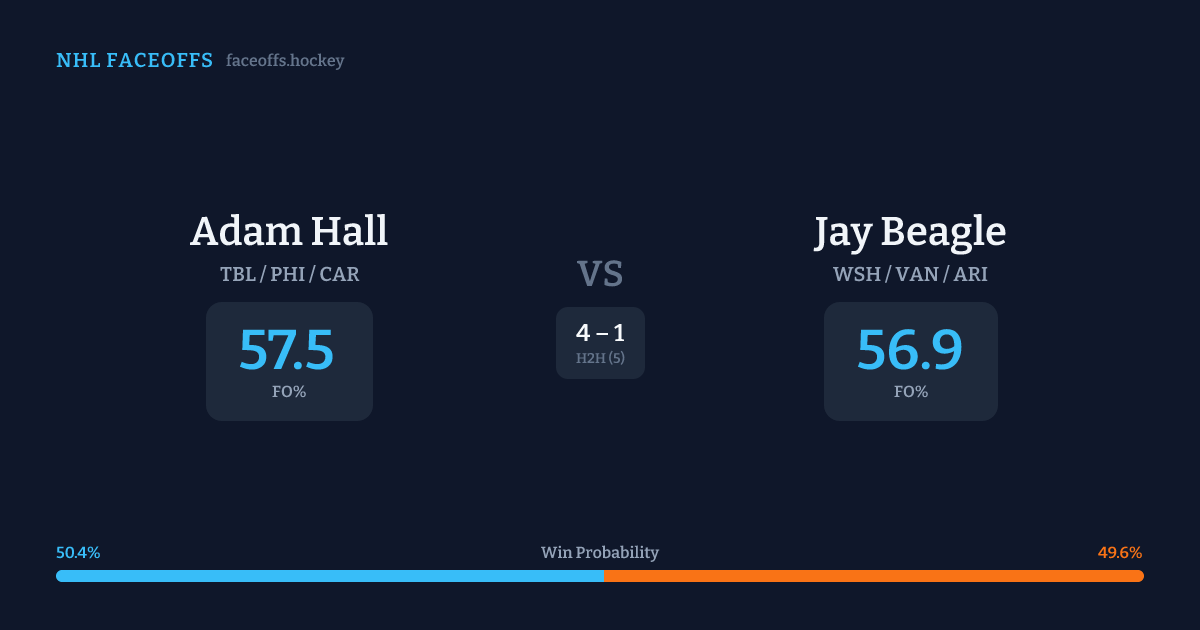 Adam Hall vs Jay Beagle — Faceoff Head-to-Head