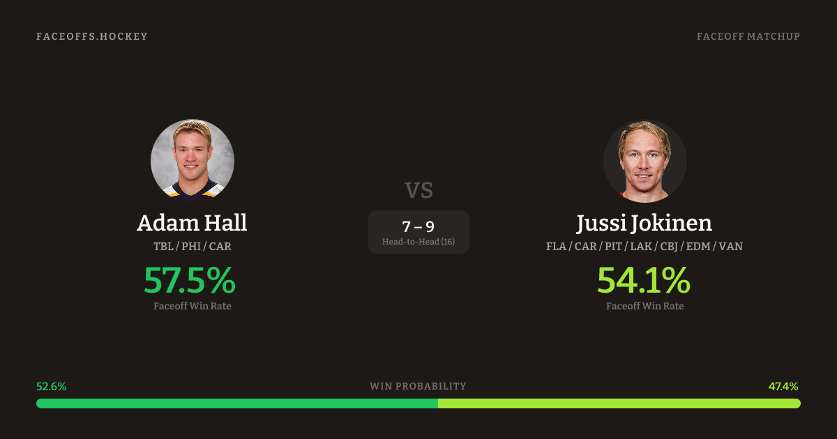 Adam Hall vs Jussi Jokinen — Faceoff Head-to-Head