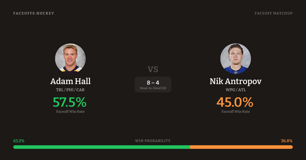 Adam Hall vs Nik Antropov — Faceoff Head-to-Head
