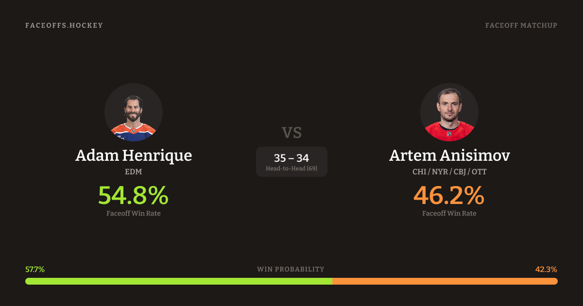 Adam Henrique vs Artem Anisimov — Faceoff Head-to-Head
