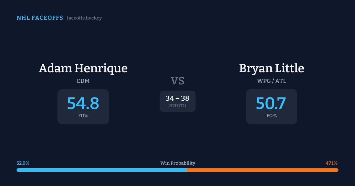 Adam Henrique vs Bryan Little — Faceoff Head-to-Head