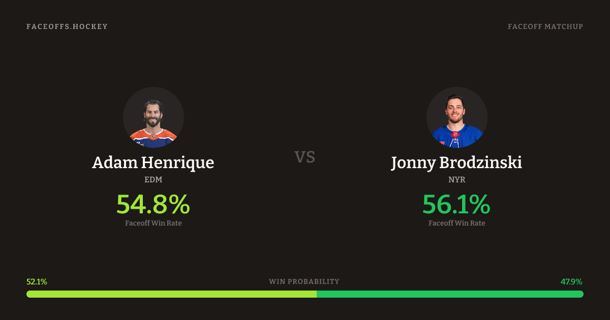 Adam Henrique vs Jonny Brodzinski — Faceoff Head-to-Head