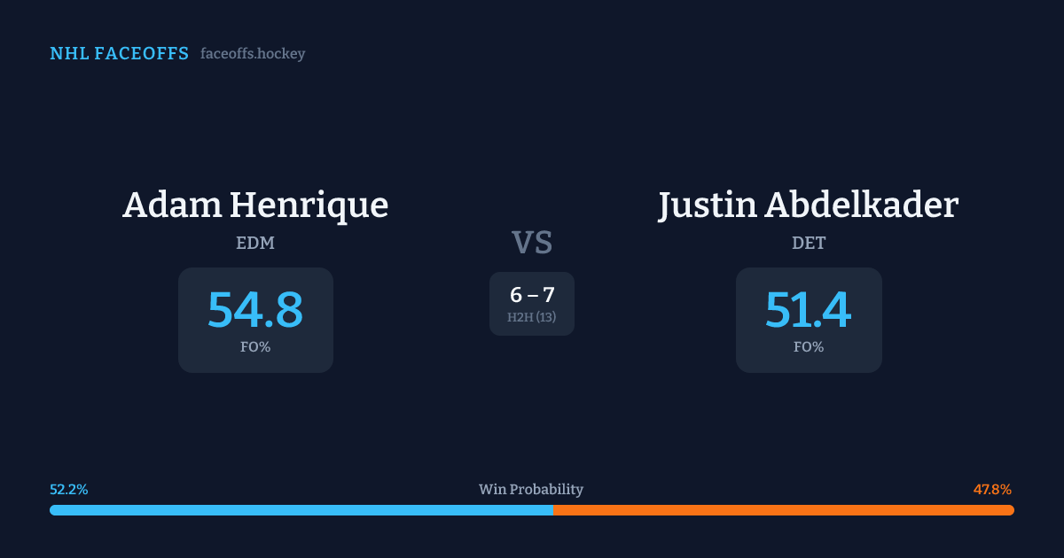 Adam Henrique vs Justin Abdelkader — Faceoff Head-to-Head