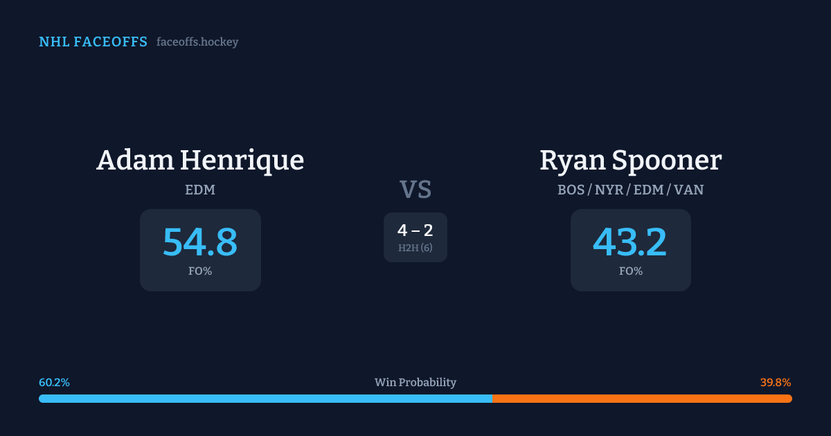 Adam Henrique vs Ryan Spooner — Faceoff Head-to-Head