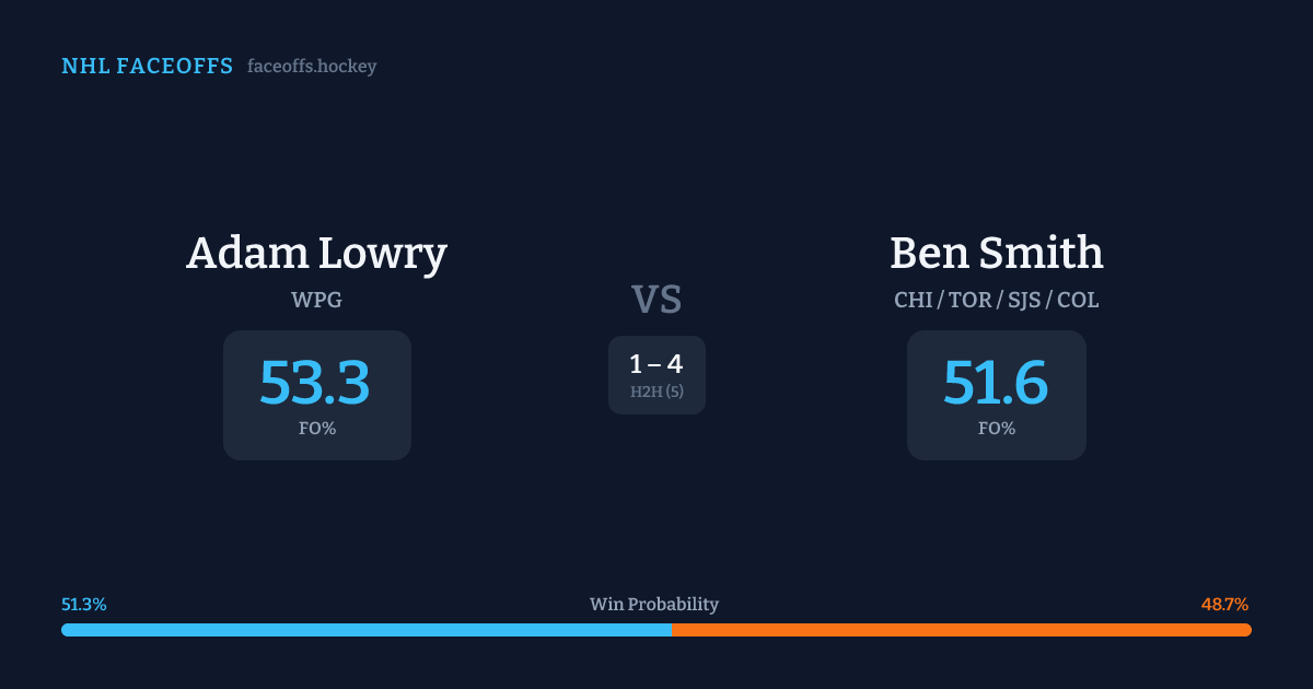 Adam Lowry vs Ben Smith — Faceoff Head-to-Head
