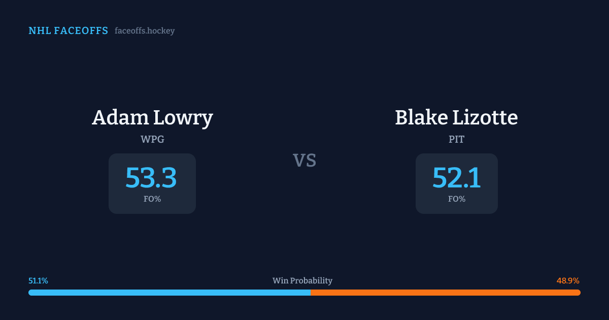 Adam Lowry vs Blake Lizotte — Faceoff Head-to-Head