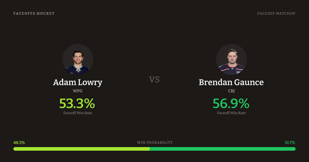 Adam Lowry vs Brendan Gaunce — Faceoff Head-to-Head