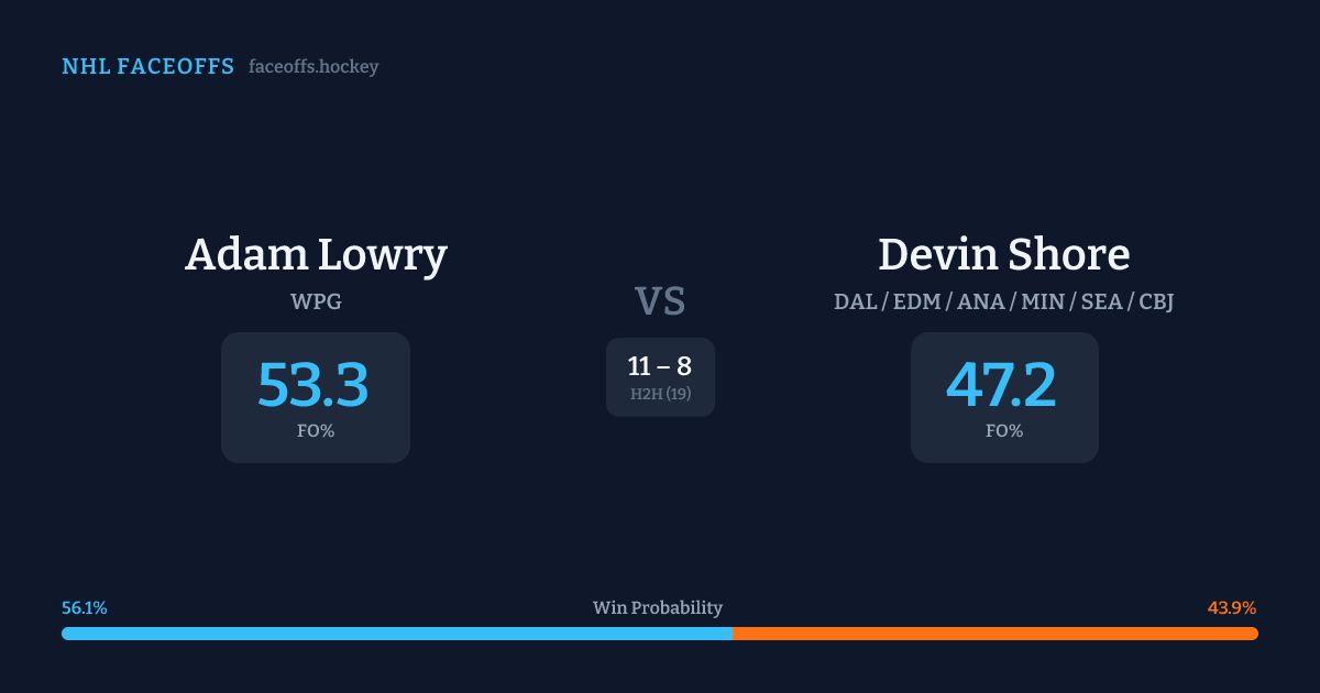 Adam Lowry vs Devin Shore — Faceoff Head-to-Head