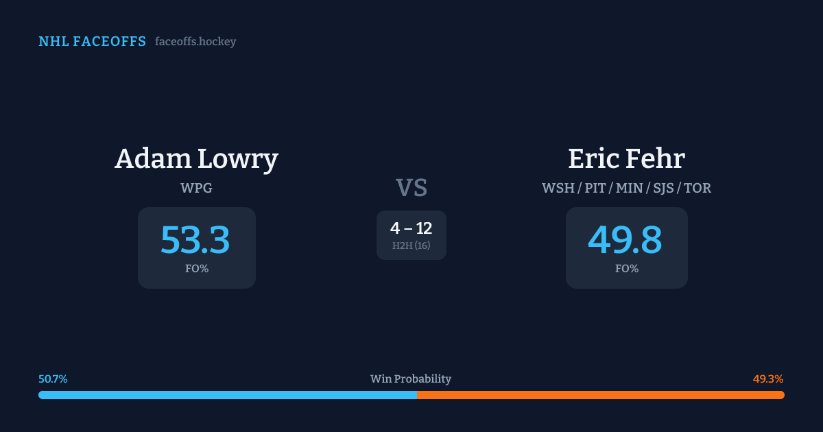 Adam Lowry vs Eric Fehr — Faceoff Head-to-Head