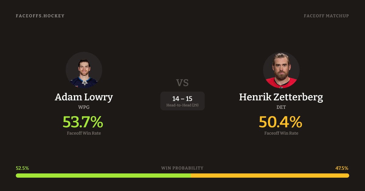 Adam Lowry vs Henrik Zetterberg — Faceoff Head-to-Head