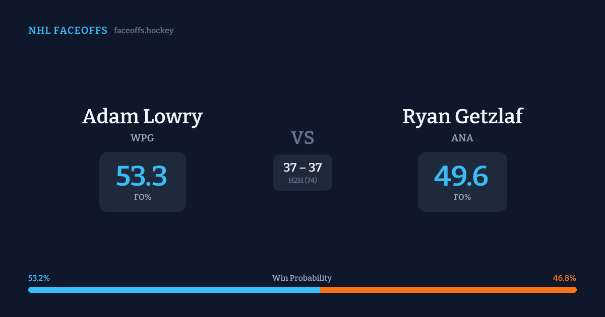 Adam Lowry vs Ryan Getzlaf — Faceoff Head-to-Head