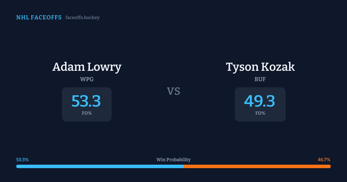 Adam Lowry vs Tyson Kozak — Faceoff Head-to-Head