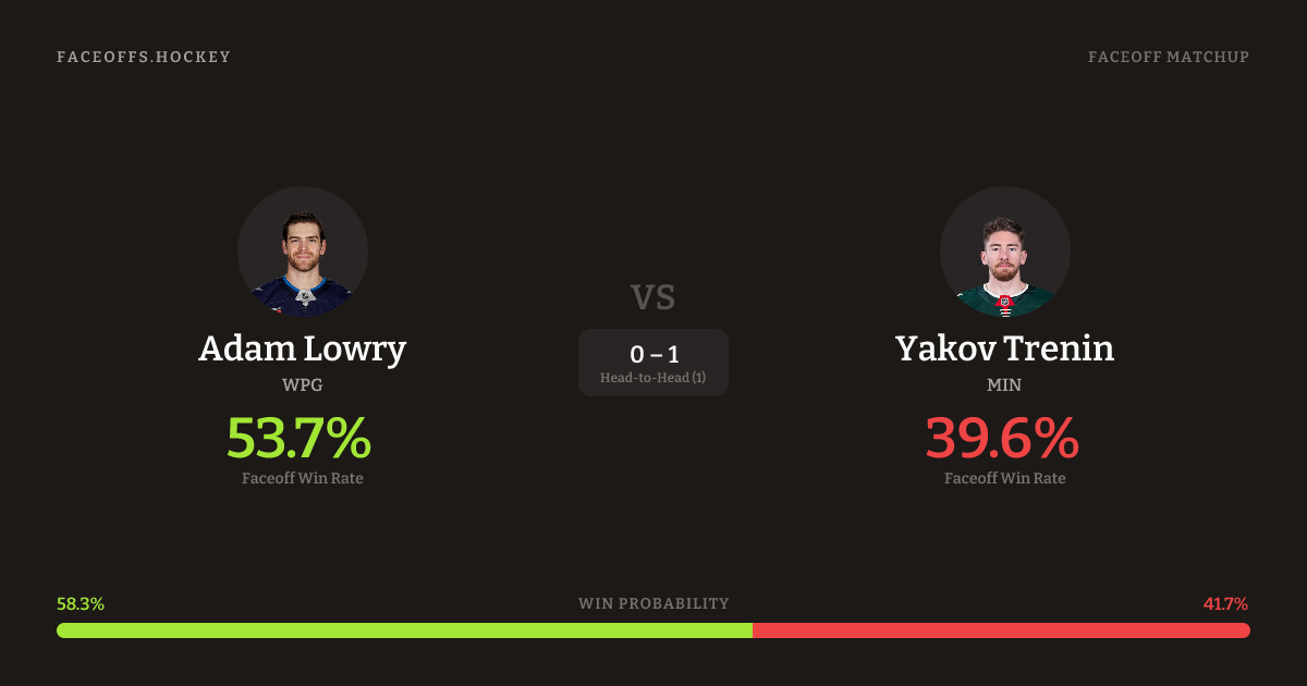 Adam Lowry vs Yakov Trenin — Faceoff Head-to-Head