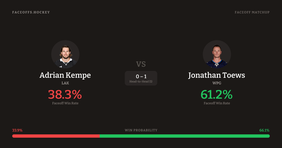 Adrian Kempe vs Jonathan Toews — Faceoff Head-to-Head