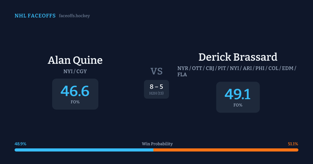 Alan Quine vs Derick Brassard — Faceoff Head-to-Head