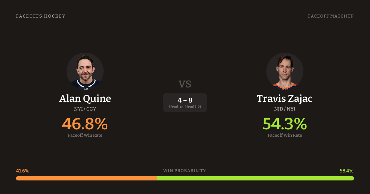 Alan Quine vs Travis Zajac — Faceoff Head-to-Head