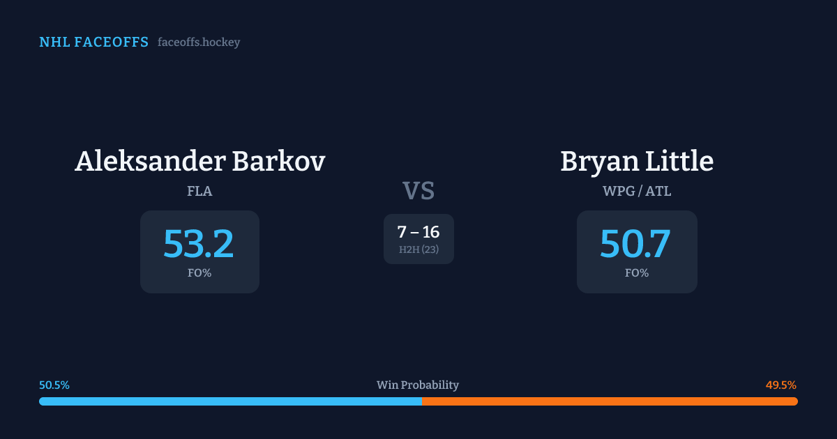 Aleksander Barkov vs Bryan Little — Faceoff Head-to-Head