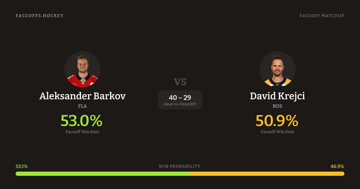 Aleksander Barkov vs David Krejci — Faceoff Head-to-Head
